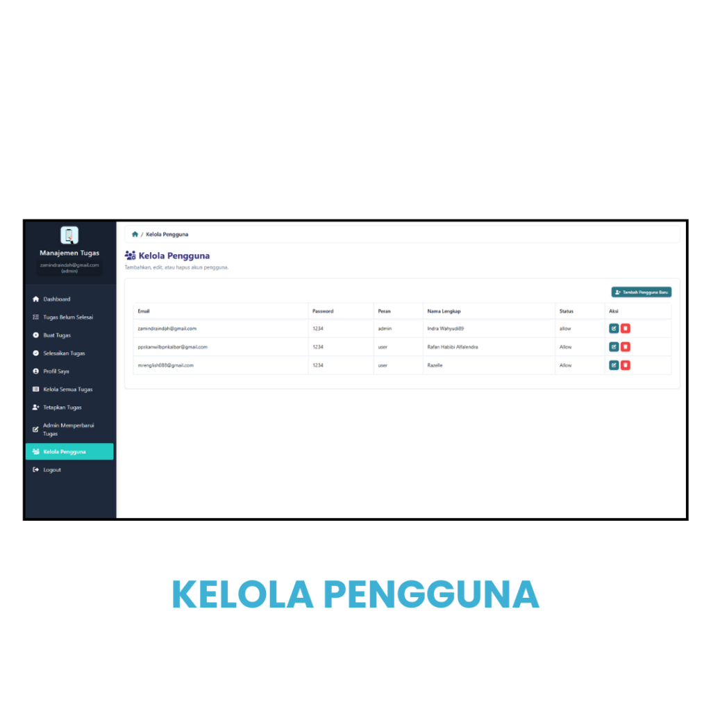Fitur ini digunakan untuk membuat tugas dan menetapkan tugas kepada user atau pengguna