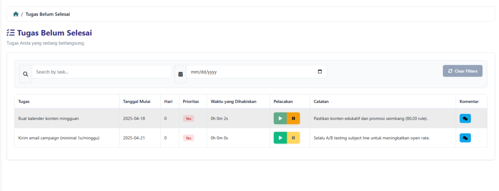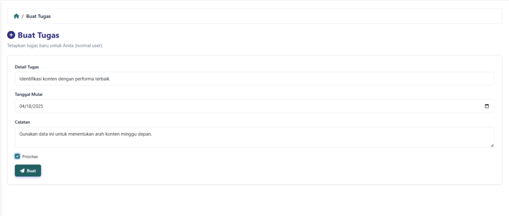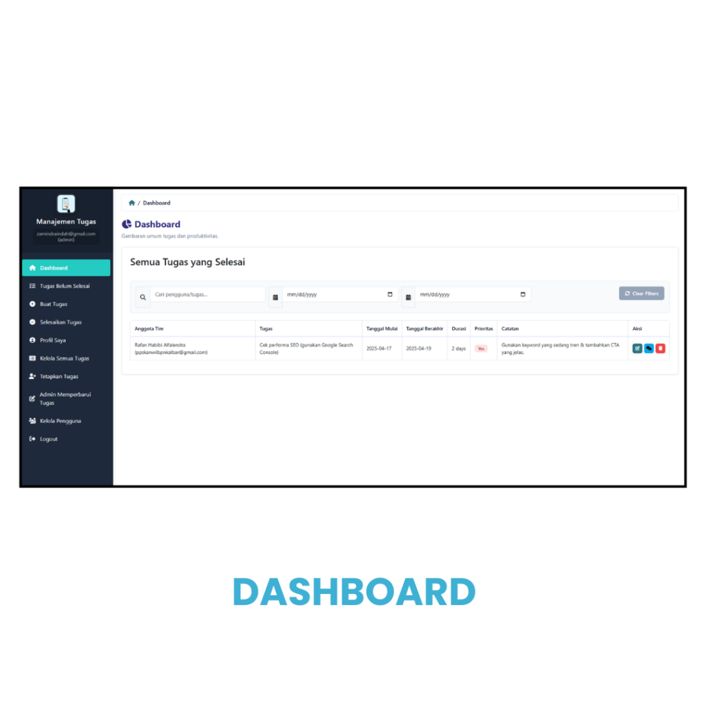 Aplikasi sistem manajemen tugas yang dirancang untuk membantu untuk diri sendiri maupun tim agar bekerja lebih sinkron, cepat, dan rapi — tanpa perlu aplikasi rumit.