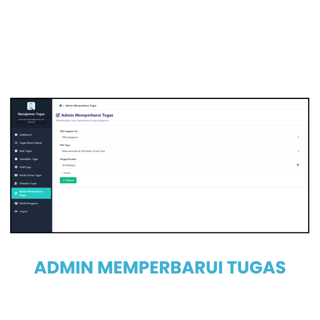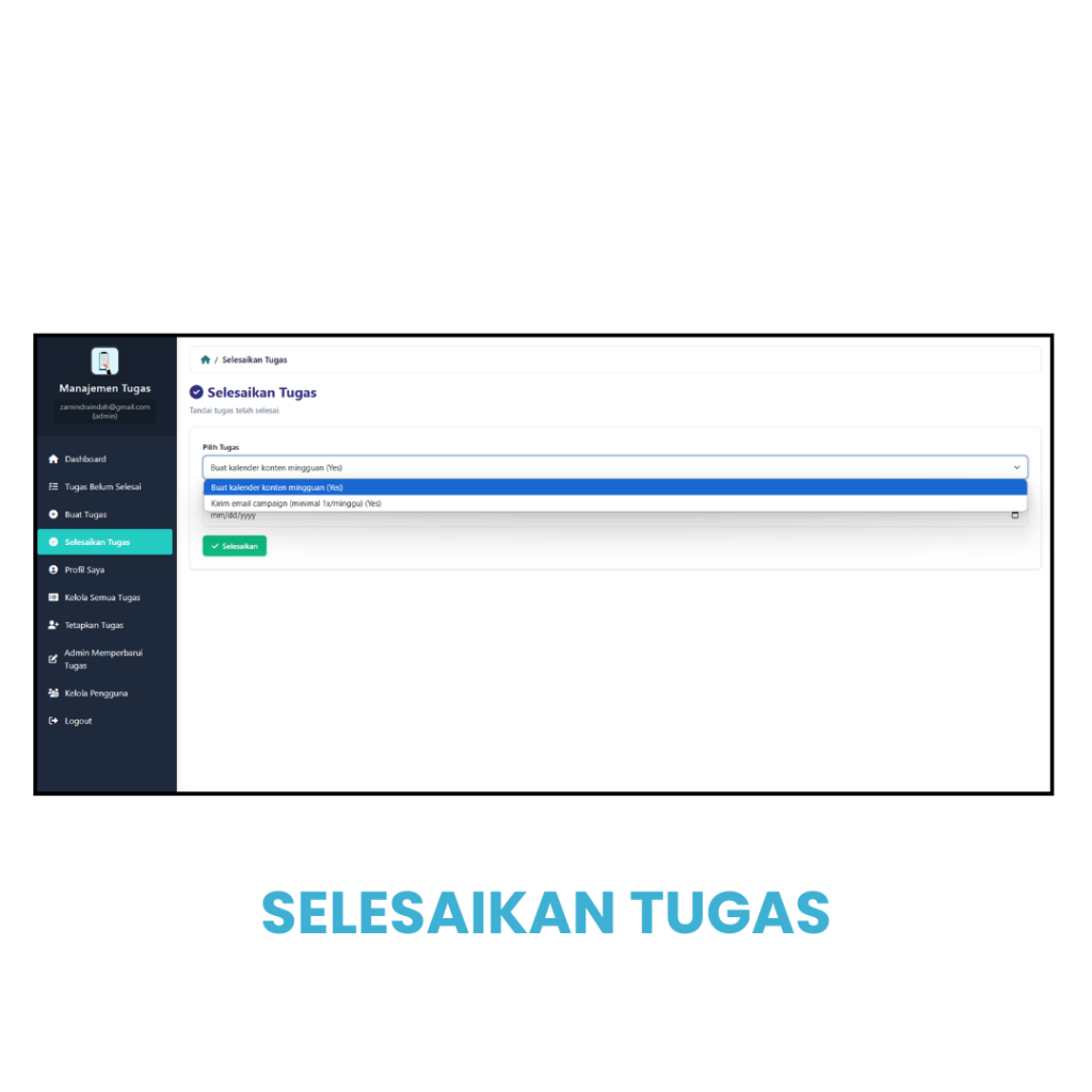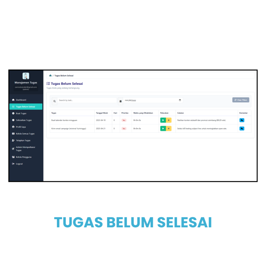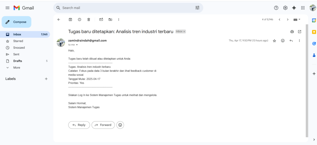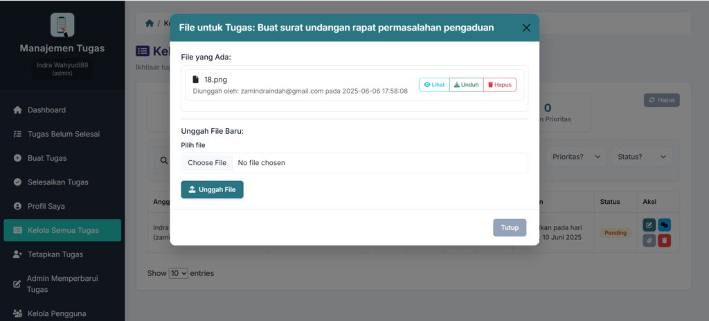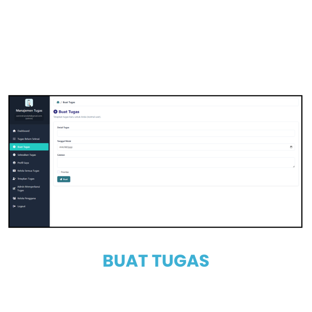 Tugas yang baru dibuat akan ada notifikasi pada email admin